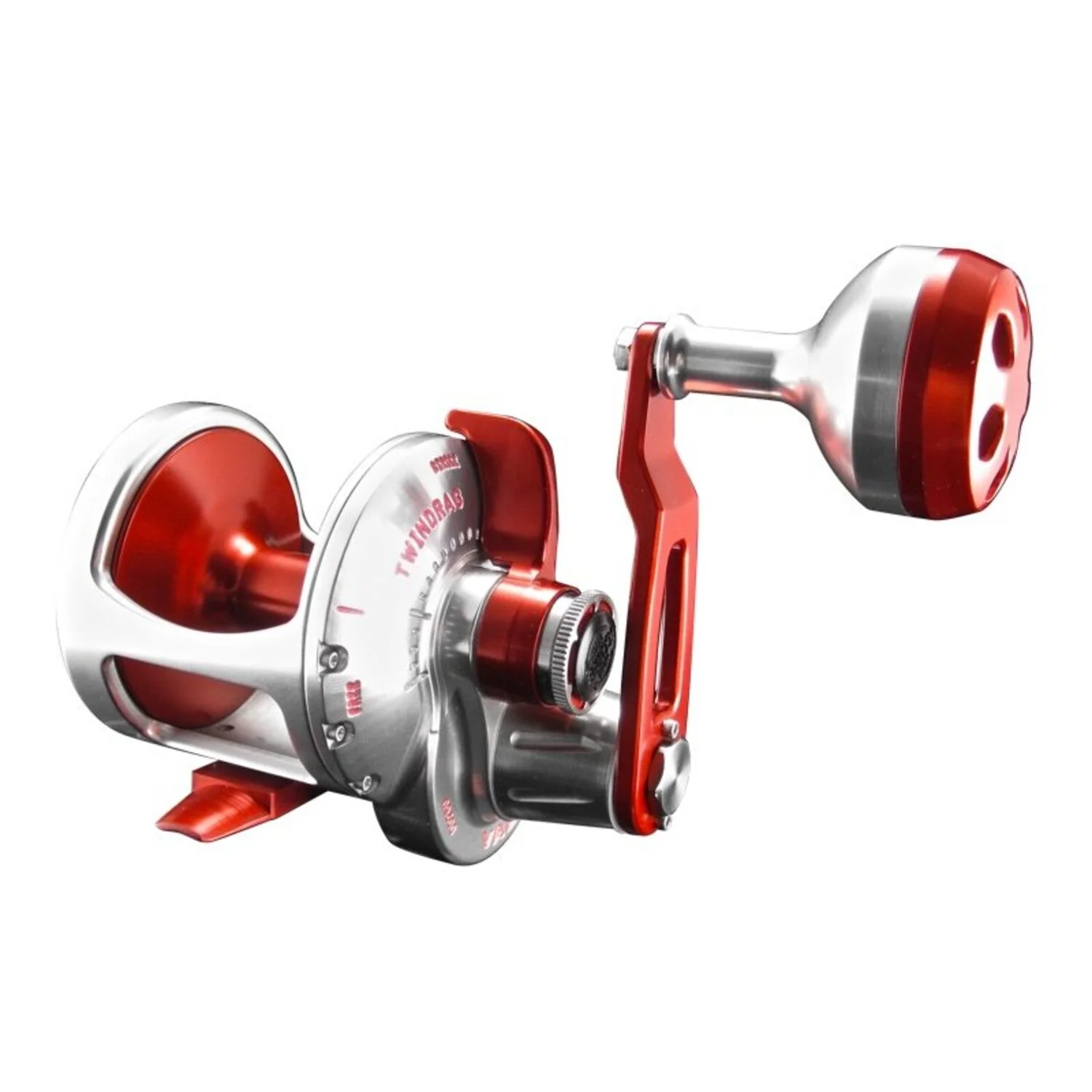 Accurate Boss Valiant BV-500 Single-Speed Lever Drag Reels have a 6:1 gear ratio. Choose from solid black, silver/blue and silver/red in right and left handed models. There is a clicker on the sideplate.
